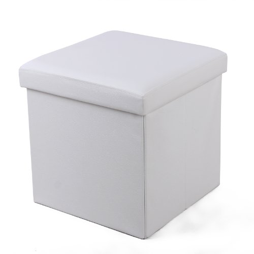 Ⓑ 38x38x38 cm Tabouret Cube Pouf Dé Pliable Coffre de Rangement Blanc LSF103