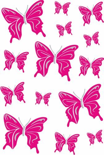 Ⓓ Autocollant papillon rose / argent, 200 x 300mm,